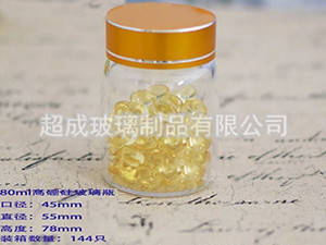 此款玻璃瓶主要用于高档保健品,虫草含片,玛咖精片,鹿茸胶囊,参茸,山参片,虫草粉,蜂胶,鱼油,燕窝,海参等高档奢饰品。